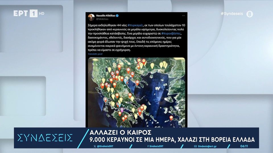 Την Τρίτη (20-08-24) τα έντονα καιρικά φαινόμενα θα πλήξουν τη Μακεδονία, τη Θράκη και πιθανόν στη Θεσσαλία.